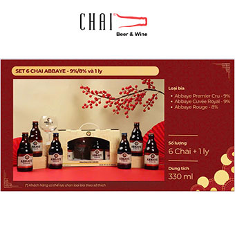 HỘP QUÀ 6 CHAI BIA ABBEY MIX CÁC VỊ 9%VOL + 1 LY 330ml / Bia Bỉ nhập khẩu