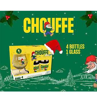 HỘP QUÀ BIA CHOUFFE 330ml/ Bia Bỉ nhập khẩu (4 chai và 1 ly)