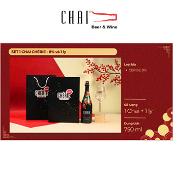 HỘP QUÀ 1 CHAI BIA CHERIE HOA QUẢ + 1 LY\BIA BỈ NHẬP KHẨU