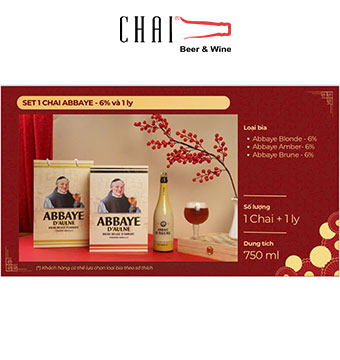 HỘP QUÀ 1 CHAI BIA ABBEY 6%vol 750ml + 1 LY / Bia Bỉ nhập khẩu