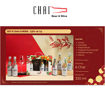 • Tên sản phẩm HỘP QUÀ 6 CHAI BIA CHERIE HOA QUẢ + 1 LY