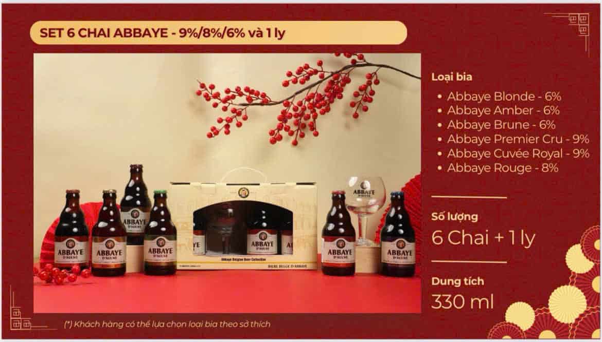 HỘP QUÀ 6 CHAI BIA ABBEY MIX CÁC VỊ + 1 LY 330ml / Bia Bỉ nhập khẩu